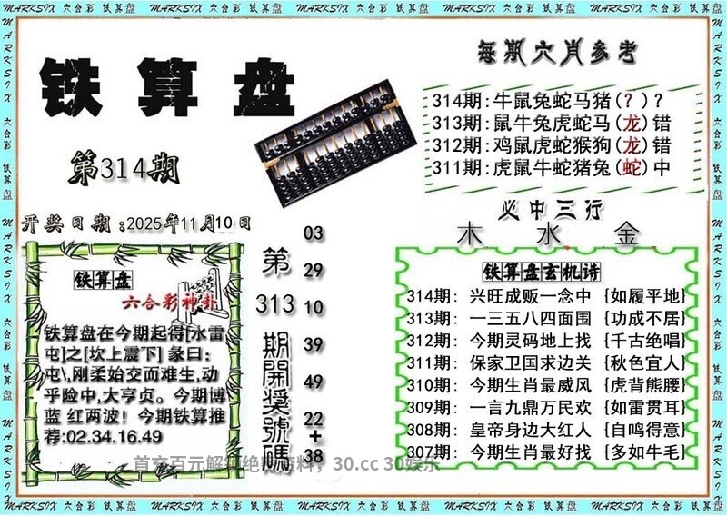 | 308期 | 0.1.2 | 1.4.5.6.9 | 开:兔39中 |
